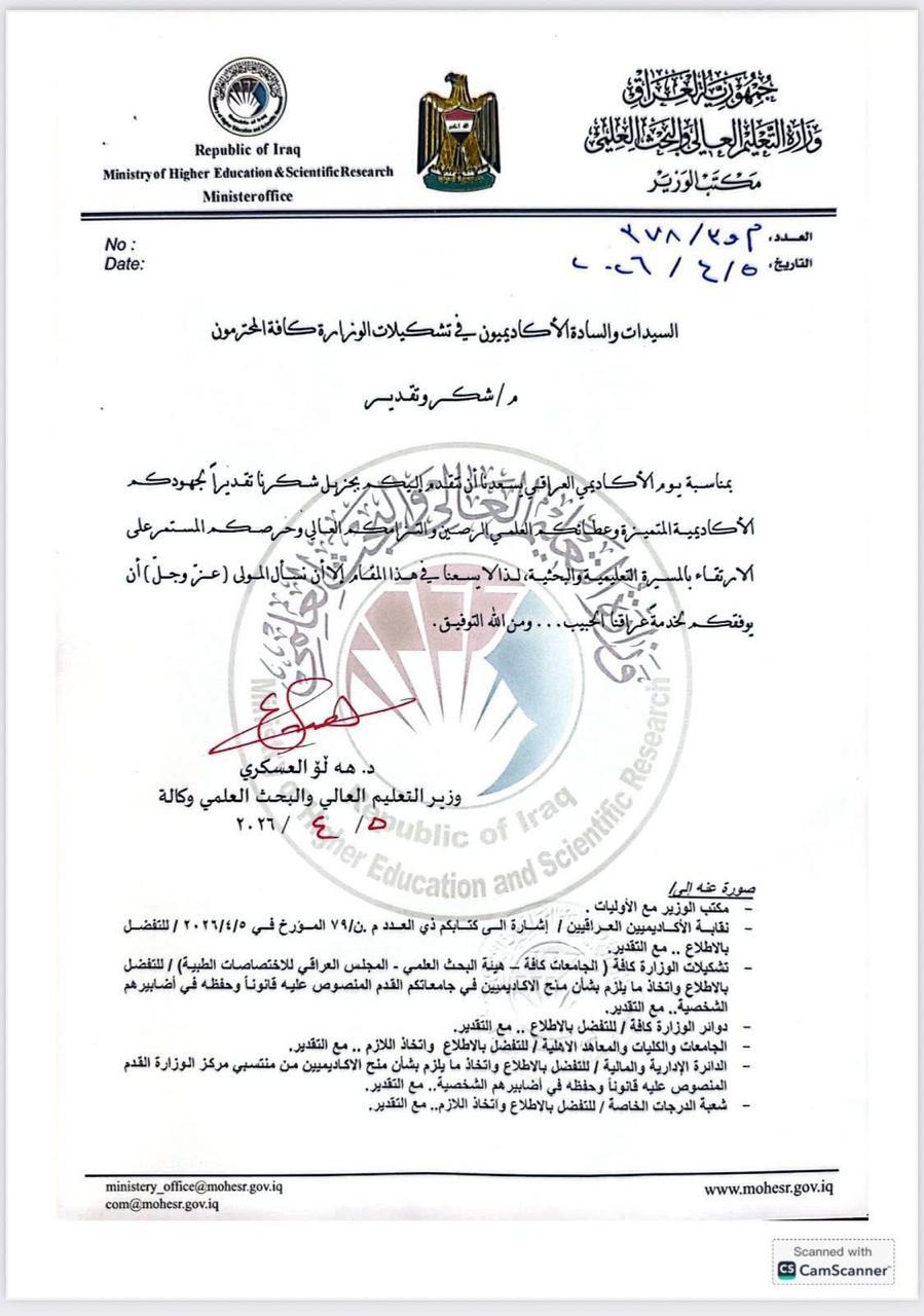 - وزير التعليم العالي يشارك في حفل تخرج طلبة جامعة الكرخ للعلوم