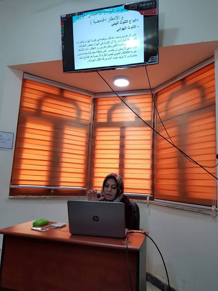 اقامت كلية التحسس النائي والجيوفيزياء محاضرة عن تلوث الهواء وبعنوان (الاحتباس الحراري والامطار الحامضية) القتها التدريسية في الكلية الدكتورة خالدة علي وبحضور عدد من الاكاديمين والتدريسيين.