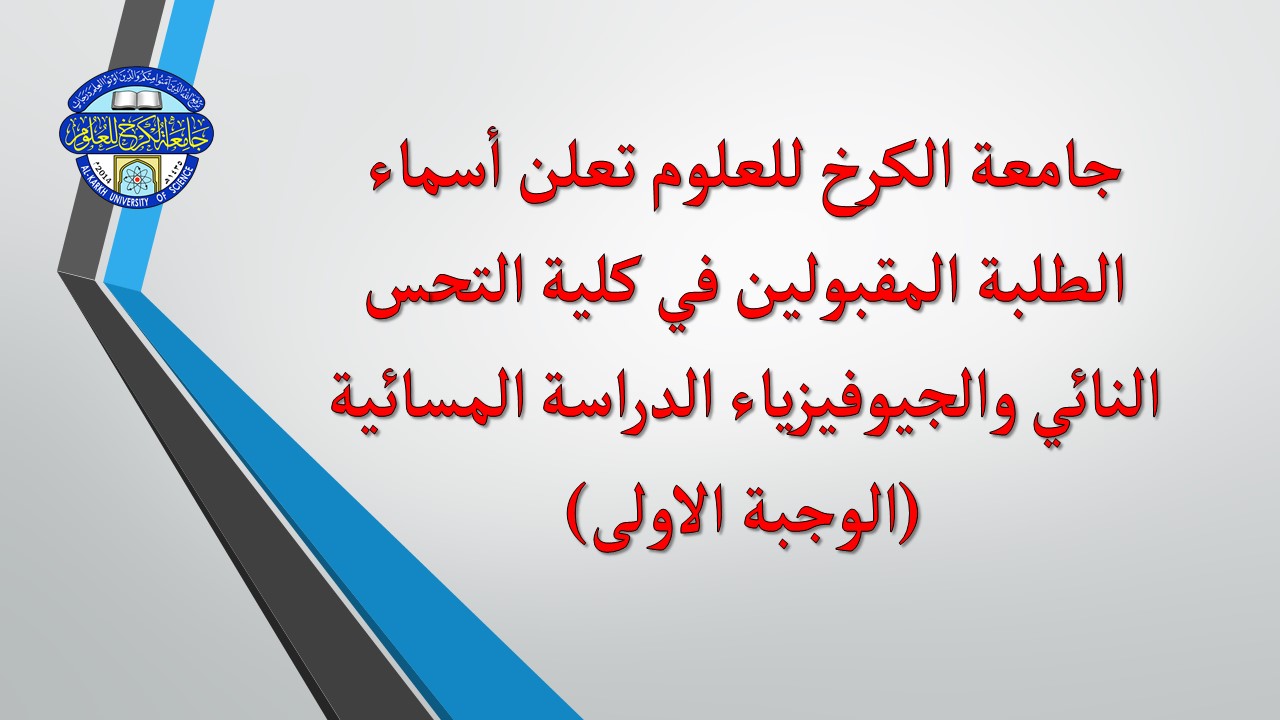 جامعة الكرخ للعلوم تعلن نتائج القبول للدراسة المسائية لكلية التحسس النائي والجيوفيزياء (الوجبة الاولى)
